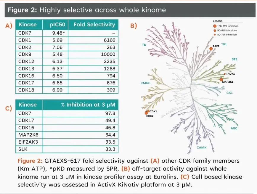 AI辅助药物研发逐渐成为投资者和制药企业的关注赛道,也不乏有产品已经进入临床研究。本届会议上,英国AI智能公司Exscientia报告了CDK7抑制剂GTAEXS-617的临床前数据。Exscientia声称通过AI药物发现平台,仅通过136种化合物的合成和确定了GTAEXS-617,临床前数据如何想必也是各有观点。
