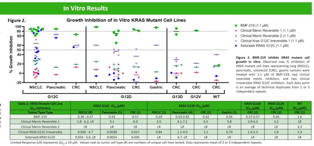 BMF-219与SNDX-5613不同,是一种不可逆menin抑制剂,阻断menin和MLL之间的蛋白-蛋白相互作用。不可逆menin抑制剂可以深度失活menin,并且不需要高剂量的持续药物暴露。而且,BMF-219也表现出对G12C、G12D、G12V和G13D等多个KRAS突变株的生长抑制活性。
