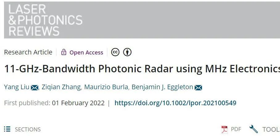 相关论文以《基于 MHz 电信号驱动的 11GHz 带宽光子辅助雷达》(11-GHz-Bandwidth Photonic Radar using MHz Electronics)为题发表在 Laser & Photonics Reviews上。