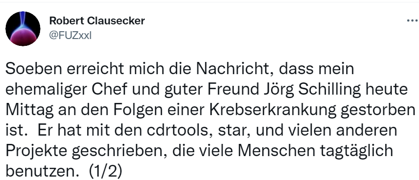 开源先驱Jörg Schilling因肾癌逝世,享年66岁!光盘刻录之父,却为Linux社区所不容