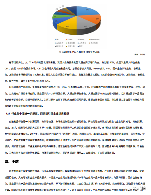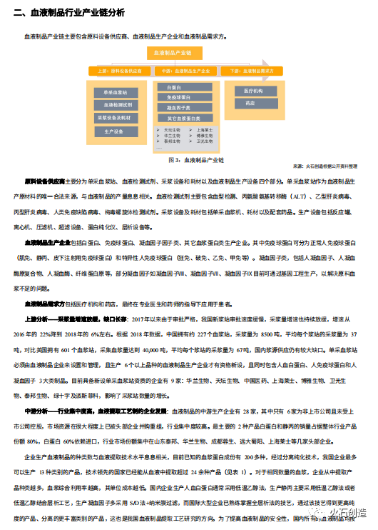 2020年疫情之初,以白蛋白和静丙为代表的血液制品迅速成为救治新冠肺炎重症患者的重要药物,可见其战略地位。受血浆资源、血液提取工艺等因素制约,血液制品行业准入壁垒高,产业链上天坛生物、上海莱士、华兰生物等国内龙头企业脱颖而出,未来提取技术的差异化、产品结构的优化及终端销售力量将成为企业的核心竞争优势。