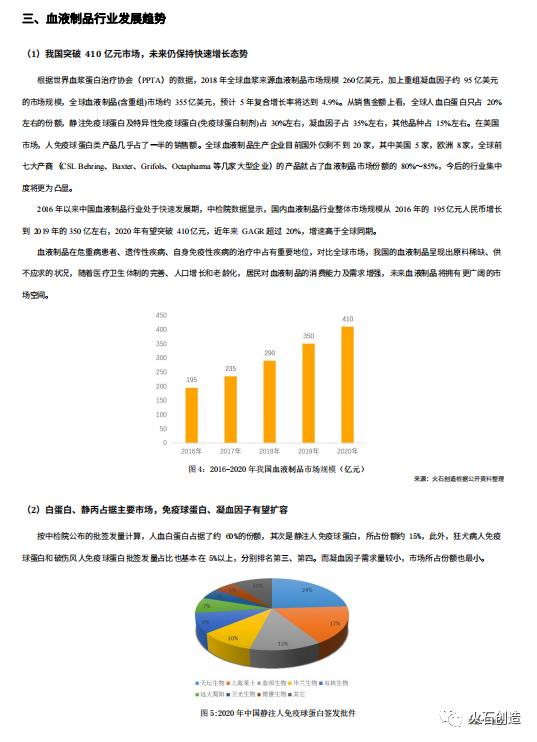 血液制品作为防控重大疾病、救治危急重症患者的基础药,不断增长的需求、新产品和新适应证的推出带动了行业市场的稳健增长。