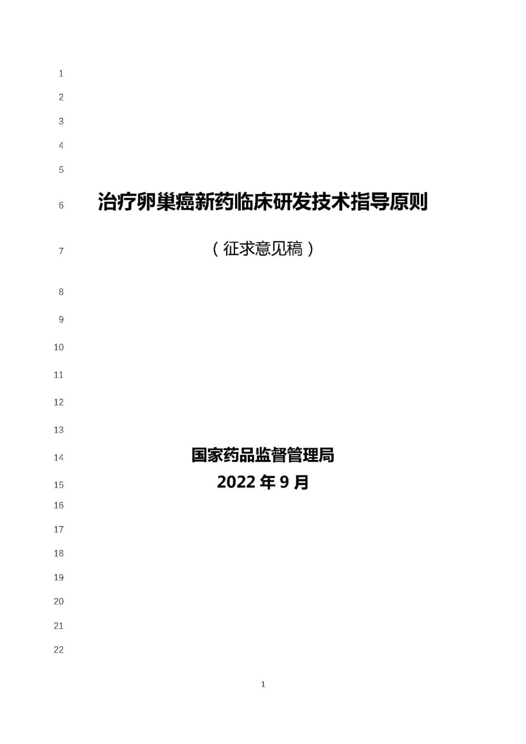现阶段国内尚无治疗卵巢癌新药临床研发相关技术指导原则,现有的指导原则尚不能涵盖和专门针对卵巢癌的临床试验设计的考虑,为进一步明确技术原则,提高新药研发效率,药品审评中心化药临床一部相关适应症小组组织撰写了《治疗卵巢癌新药临床研发技术指导原则》,形成征求意见稿,供药物研发相关人员参考。2022年9月26日,CDE就此指导原则公开征求意见,时限为自发布之日起1个月。(点击文末阅读原文,查看CDE官网原文)