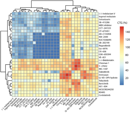 图2. 干细胞存活组合筛选示发现Chroman1和Emricasan。
