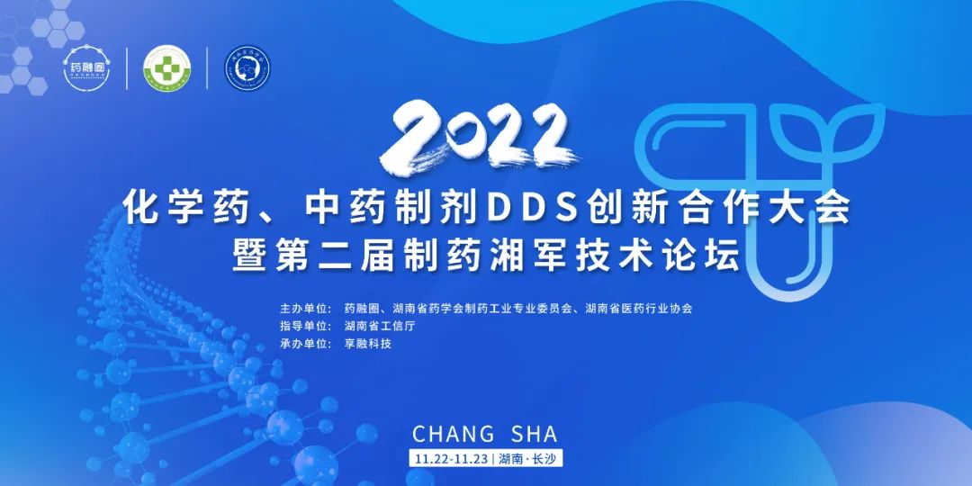 会议名称:2022化学药、中药制剂DDS创新合作大会暨第二届制药湘军技术论坛