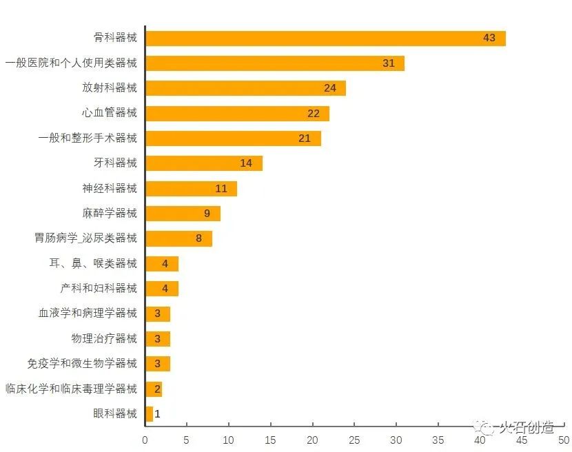 通过对510(k)上市前通知的器械根据美国医学专业用途进行分类,结果发现,1月产品获批类型最多的为骨科器械、一般医院和个人使用类器械、放射科器械、心血管器械与一般与整形手术器械,见图4。