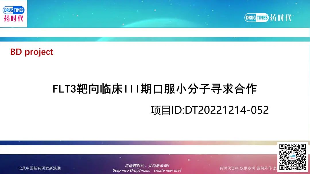 药物名称:FLT3靶向临床III期口服小分子寻求合作