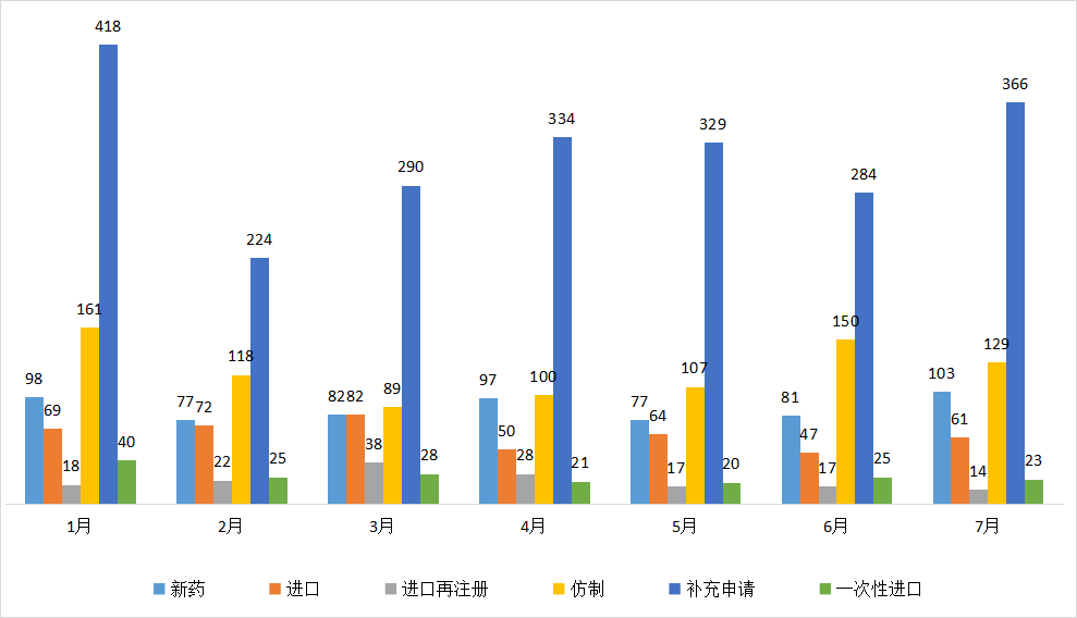 图二 2021年1-7月CDE化药各申请类型受理情况