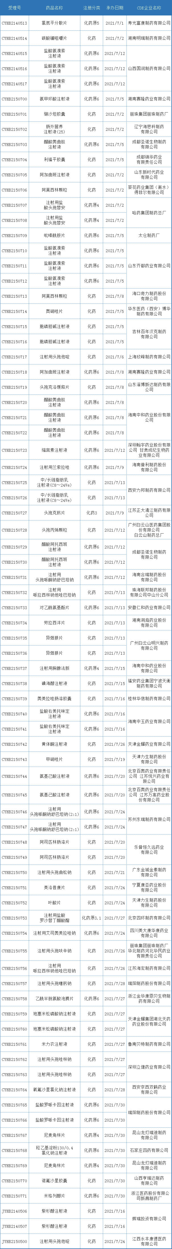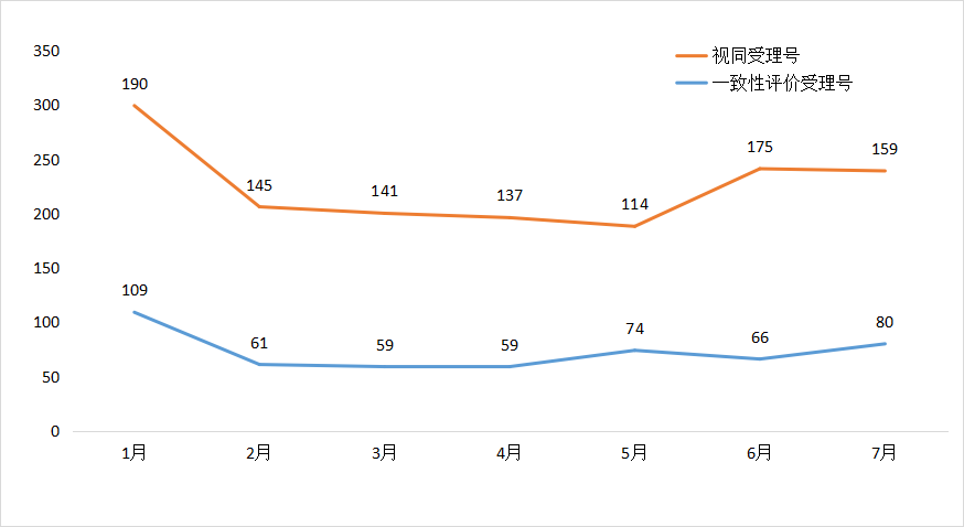 7月新增80个按仿制药质量和疗效一致性评价品种申报的受理号。