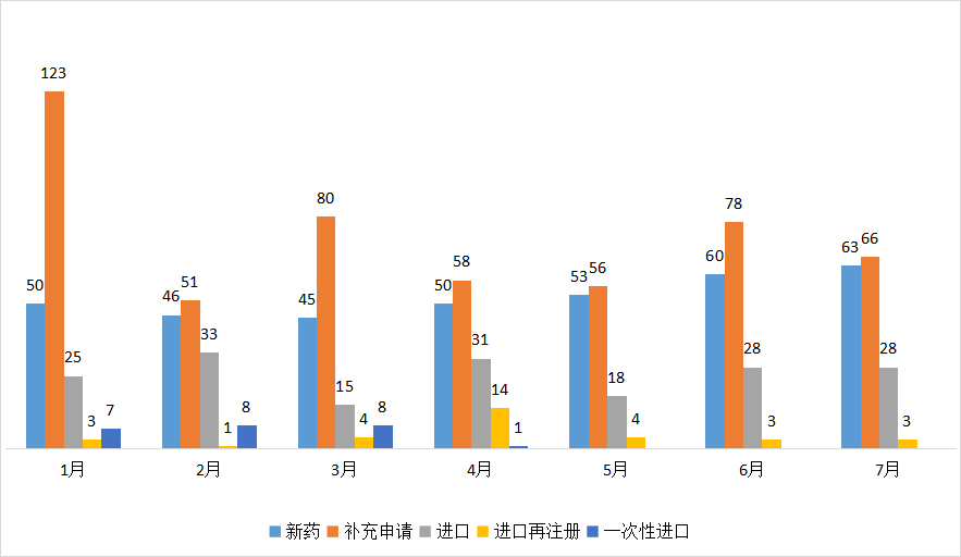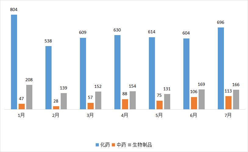 7月80个化药1类新药品种获CDE受理,其中IND申请76个,NDA申请3个。
