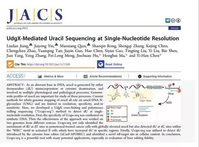 我国学者在dU碱基检测技术上取得突破性进展,相关成果于今日发表于国际权威刊物《美国化学会志》。