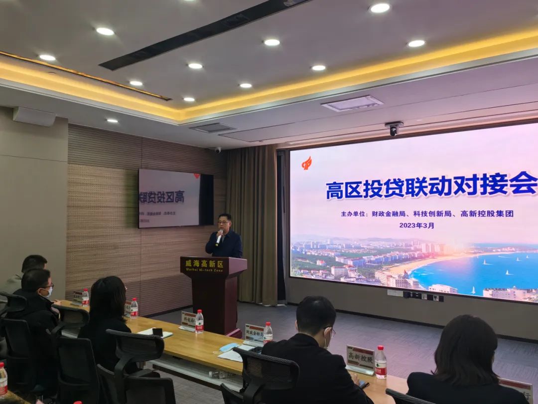 本次活动由财政金融局、科技创新局、高新控股集团共同举办,旨在搭建银企交流合作平台,拓宽企业融资渠道,降低企业融资成本。今年高区探索设立投贷联动基金,为高新区范围内的科创型企业提供股权+债权的融资服务,营造良好金融营商环境,全力助推全区经济高质量发展。会上,种点对投贷联动基金模式进行介绍,日照银行介绍了提供配套信贷支持政策,实现“创业孵化+股权投资+债权融资”一体化的金融创新服务模式。