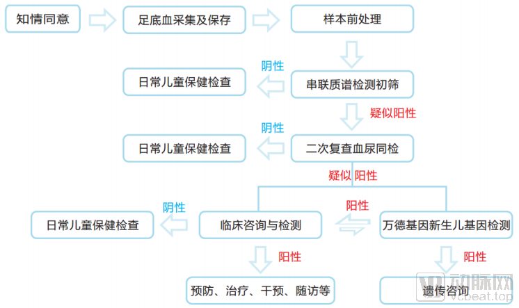 (串联质谱+基因测序联合筛查方案流程图,企业供图)