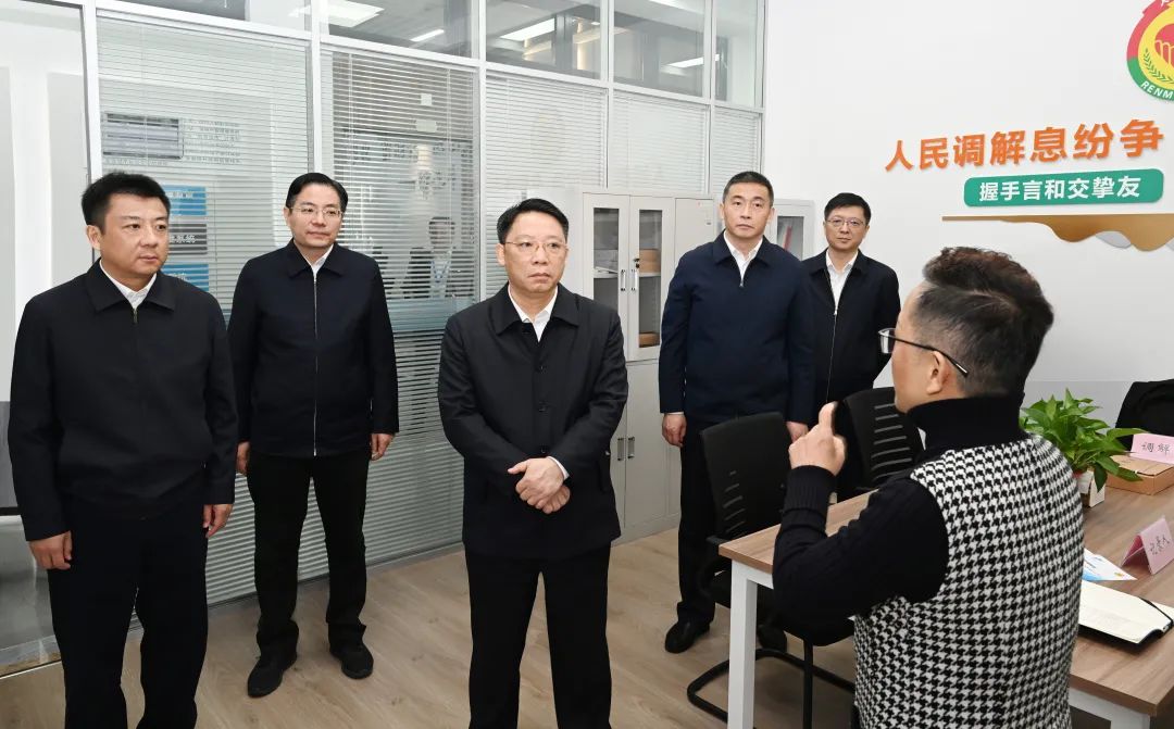 在市社会矛盾纠纷调处服务中心,刘建洋详细了解矛盾纠纷“一站式接收、一揽子调处、全链条解决”工作模式,强调要压实主体责任、强化部门协调、形成工作合力,推动构建矛盾纠纷多元化解新格局。