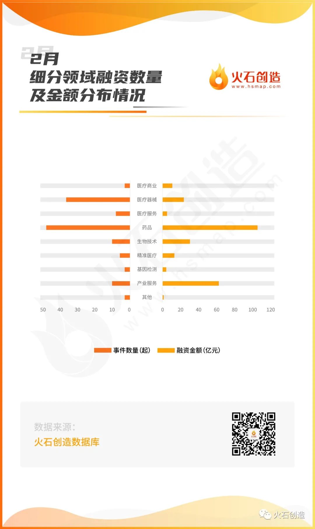 2月医疗健康领域融资123起案例,披露金额约251.58亿元,亿元以上融资案例58起,亿元以上披露金额约245.38亿元。