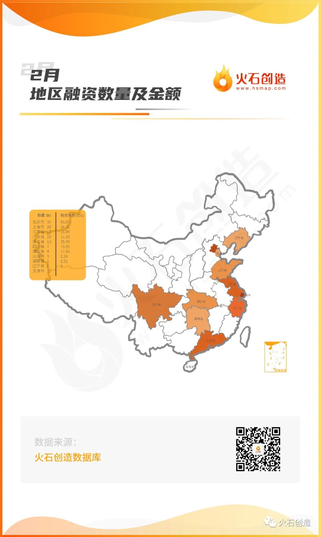2月,北京市披露的融资数量和融资金额均占据第一,且包含多起重磅融资事件。
