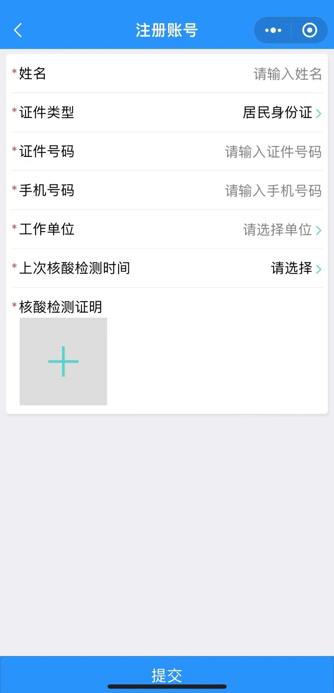 可联系单位系统管理员导入信息或点击右下角自行注册,注册后登录账号为手机号,密码将通过微信消息推送