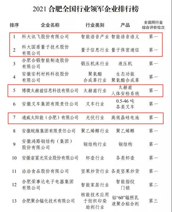 科大讯飞、科大国盾、博微太赫兹、通威太阳能