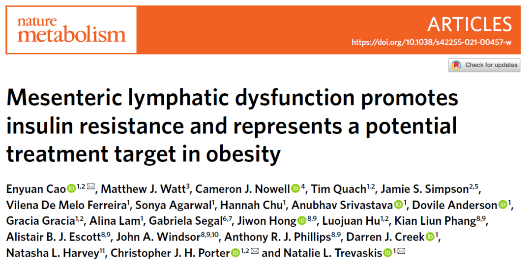 ,Christopher Porter教授以及 Natalie Trevaskis副教授在Nature Metabolism发表的论文