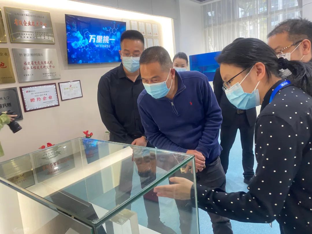 在福州迈新生物技术开发有限公司,调研组一行通过观看企业宣传片、听取介绍等方式,详细了解了迈新生物科技创新成果、未来发展布局等情况,并对企业创新实力表示肯定。