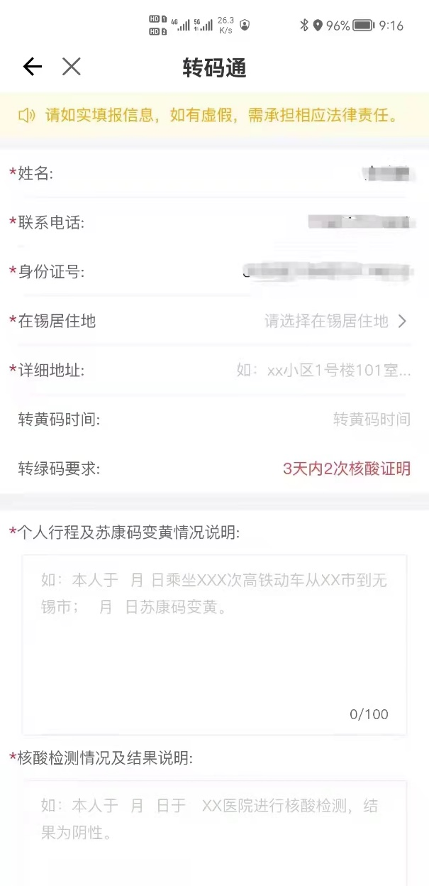 符合条件的申请转码对象,准备好相关材料:个人基本情况、2次核酸检测报告(间隔24小时以上)、承诺书。