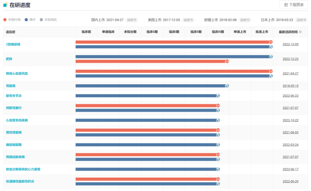 而对于不需住院的慢性疾病而言,口服药物的依从性优势将更加凸显。诺和诺德开发的口服司美格鲁肽 Rybelsus 目前仅获批用于 2 型糖尿病,而这款药物针对肥胖症的 Oasis1 III 期临床试验预计主要指标完成日期在 2023 年 3 月,有望在明年释放结果,并冲击上市。