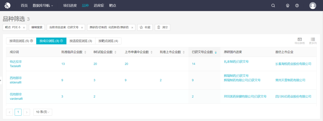 其次是西地那非,共 11 家企业获批,属于第三批集采品种;