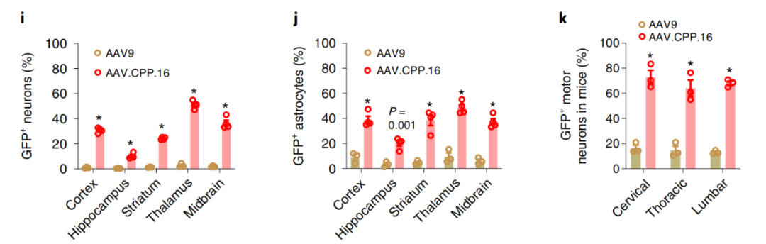 AAV.CPP.16表现出较高的脑部神经元细胞、星形胶质细胞和脊髓神经元的感染亲和力