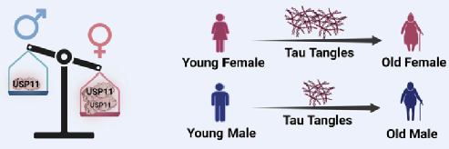 总的来说,该研究发现女性大脑中过量的USP11酶水平会导致tau过度去泛素化,从而阻止神经细胞中tau蛋白的正常清除。当过量的tau没有被消除时,会形成导致AD的病理性聚集体。研究显示,USP11的基因存在于X染色体上,女性有两条X染色体,而男性只有一条,这是增大了女性得阿尔兹海默病的风险。