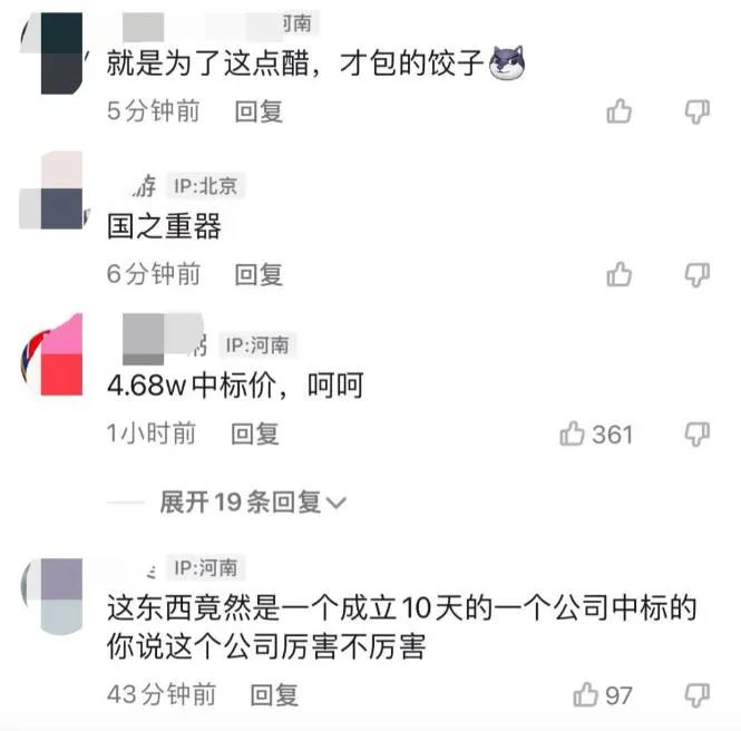 “就是为了这点醋,才包的饺子”“这家企业太强悍了”“纳税人的钱就是这样花的吗?”“要说其中没有猫腻,鬼都不信”“我也只能‘呵呵’了”……对这家神秘的中标企业,以及其中可能存在的猫腻,网友纷纷进行吐槽。