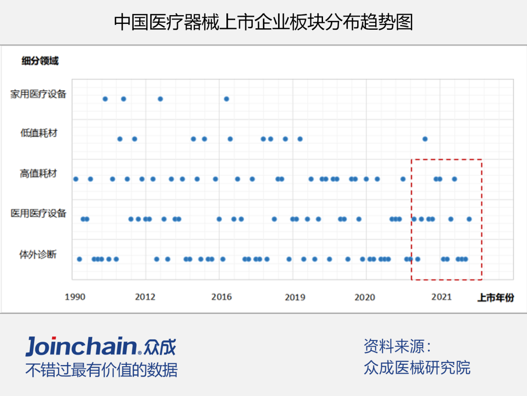 在中央领导及国家各部委关于“增强产业链供应链自主可控能力”的政策号召下,进口替代成为医疗器械行业发展大趋势。从上市情况来看,体外诊断、医用医疗设备和高值耗材等高端领域企业上市相对密集。在高值耗材“带量采购”政策出台后的第一个交易日,虽然高值耗材板块成为市场下跌主力。然而,与药品集采不同的是,国内高值耗材行业仍处于快速发展阶段,今年以来,惠泰医疗、心通医疗等一批创新型高值耗材企业的涌现并成功上市,在一定程度上缓解了耗材“集采”政策带来的影响。