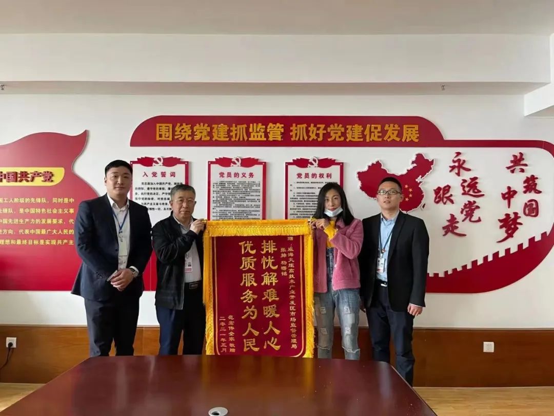 “十分感谢高新区市场监管局,急群众之所急,解群众之所困,全心全意帮助群众解难题,非常感谢你们的帮助!”5月12日,范先生委托其爱人顾女士将一面“排忧解难暖人心,优质服务为人民”的锦旗送到高新区市场监管局,对区市场监管局担当作为、认真负责为民办实事的作风连连称赞,并表示感谢。