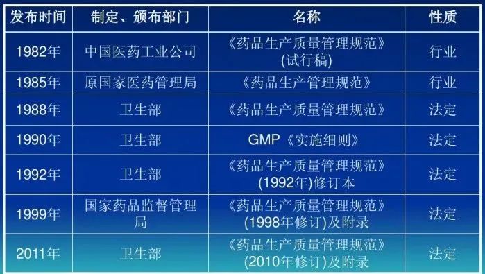 制度法规方面,自1982年我国第一部《药品生产质量管理规范》(试行稿)诞生以来,七易其稿,从行业指导文件,逐渐过渡成法规条文,足见其重要性一直在不断提升。