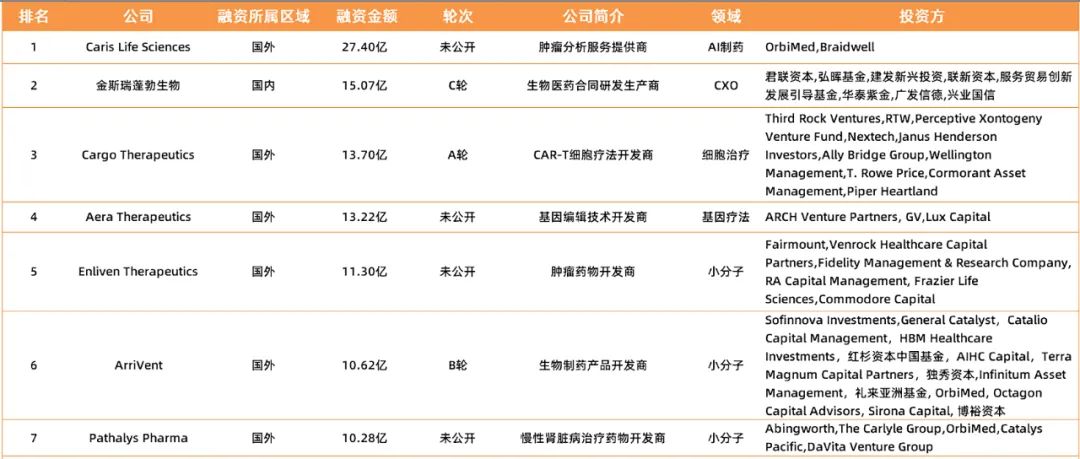 全球生物医药2023 Q1融资额TOP 10企业(除IPO)
