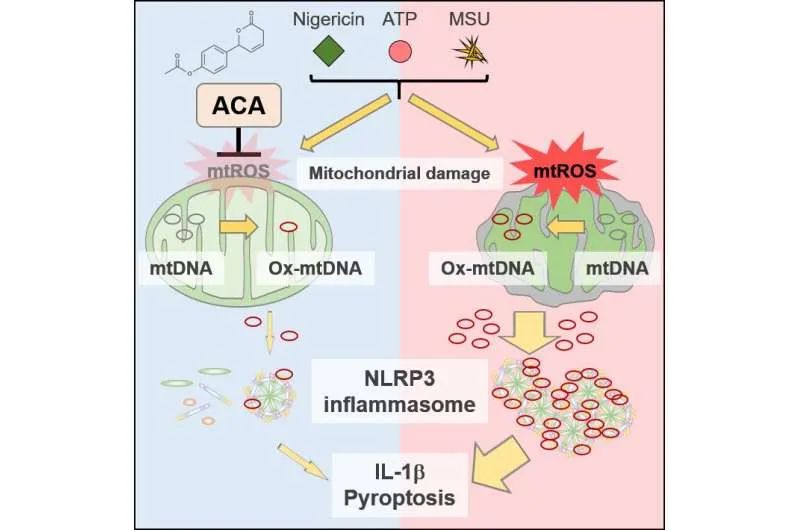 由于其他研究小组发现ACA可以减少某些免疫细胞中ROS的产生,奈良的研究人员开始好奇这种化合物如何影响NLRP3炎症小体及其功能。