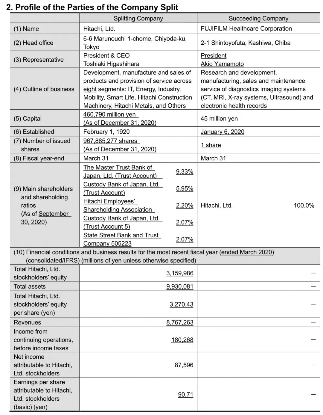 日立集团现已达成吸收式分拆协议协议,并将其成像业务资产转移到另一家公司,该公司的所有股份将随后转移给富士胶片。
