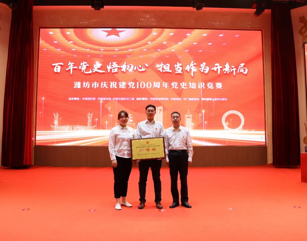 10月20日,“百年党史悟初心,担当作为开新局”潍坊市庆祝建党100周年党史知识竞赛决赛在东方大酒店落幕。经过激烈角逐,高新区代表队以各县市区、市属开发区第一的好成绩,荣获全市党史知识竞赛二等奖。