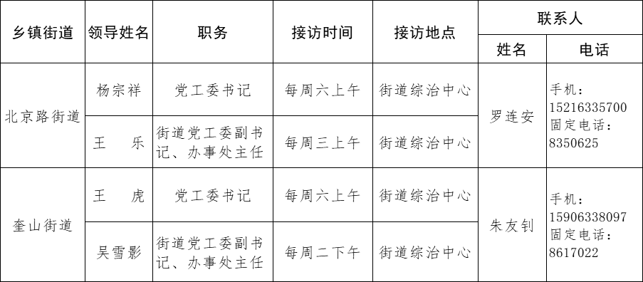 为进一步畅通信访渠道,切实维护群众合法权益,根据《信访工作条例》《乡镇街道党政主要负责同志接待群众来访工作实施办法(试行)》等有关规定,现将日照经开区两街道党政主要负责同志公开接访安排公布如下: