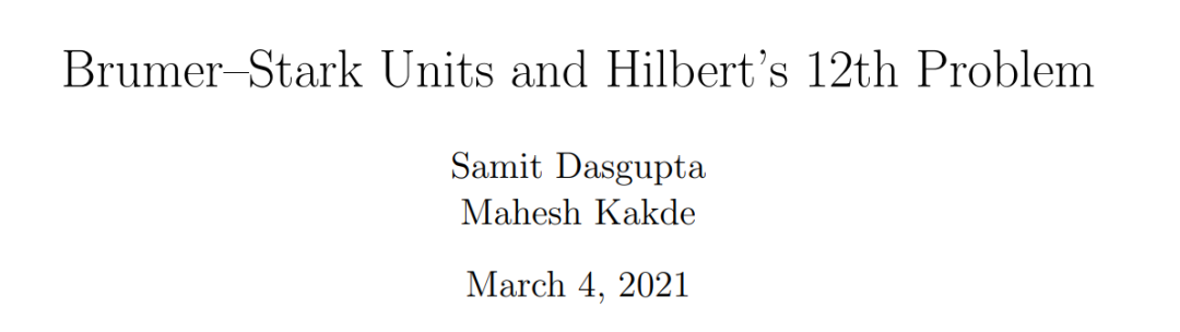 经过数学家们数十年不断的研究探索,今年 3 月初发表在 arXiv 上的论文《Brumer–Stark Units and Hilbert’s 12th Problem 》终于描述出了希尔伯特 100 多年前寻找的