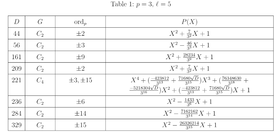 此外,这个计算机程序在 GitHub 上有一个项目,名为「Computation-of-Elliptic-Units」,主要计算「生成实二次域希尔伯特类域所需的椭圆形单位和多项式」。下表 1 为一部分计算结果: