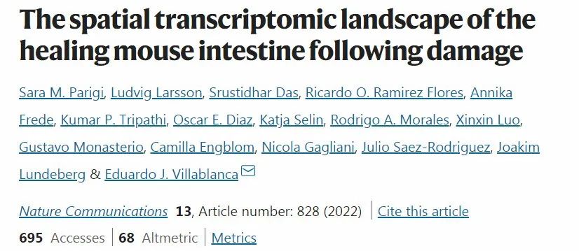 1.Sara M. Parigi et al, The spatial transcriptomic landscape of the healing mouse intestine following damage, Nature Communications (2022). DOI: 10.1038/s41467-022-28497-0
