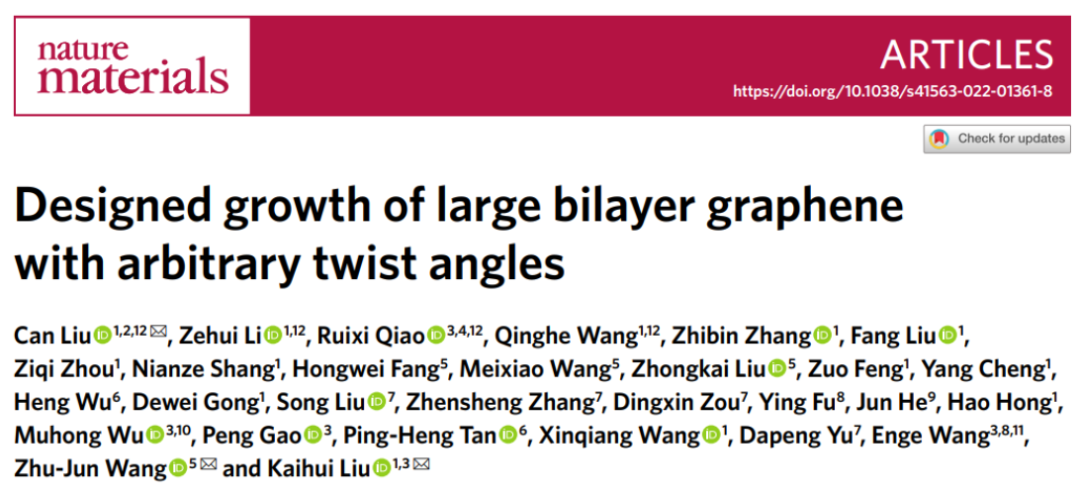 1.Liu, C., Li, Z., Qiao, R. et al. Designed growth of large bilayer graphene with arbitrary twist angles. Nat. Mater. (2022). https://doi.org/10.1038/s41563-022-01361-8