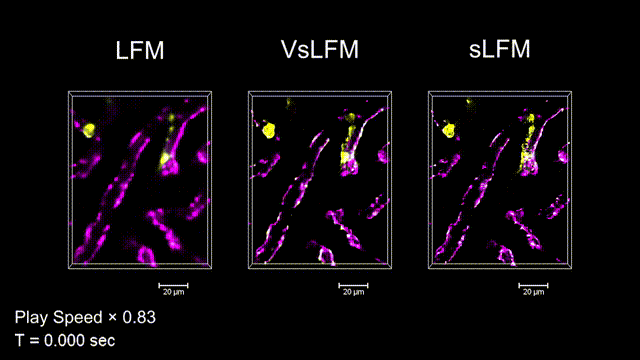 图4. VsLFM有效去除高速运动细胞伪影,同时维持高分辨率(GIF)