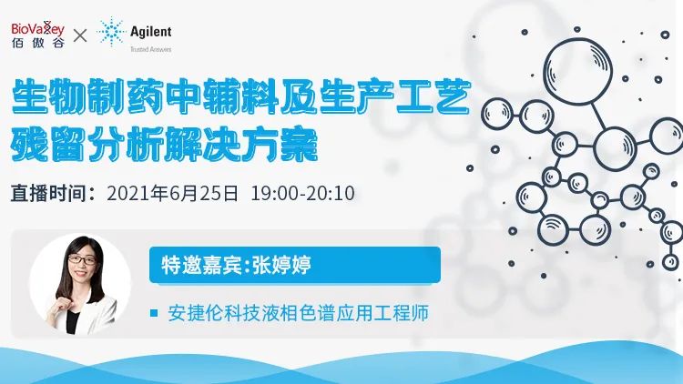 基于此,6月25日由安捷伦联合佰傲谷BioValley共同组织的线上直播课程将主要针对生物制药辅料和工艺残留的解决方案,希望能够给大家提供一些新的思路。