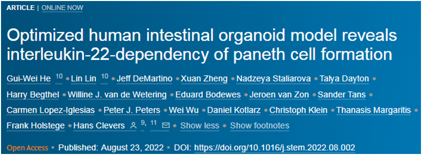 Gui-Wei He et al. Optimized human intestinal organoid model reveals interleukin-22-dependency of Paneth cell formation. Cell Stem Cell, 2022, doi:10.1016/j.stem.2022.08.002.