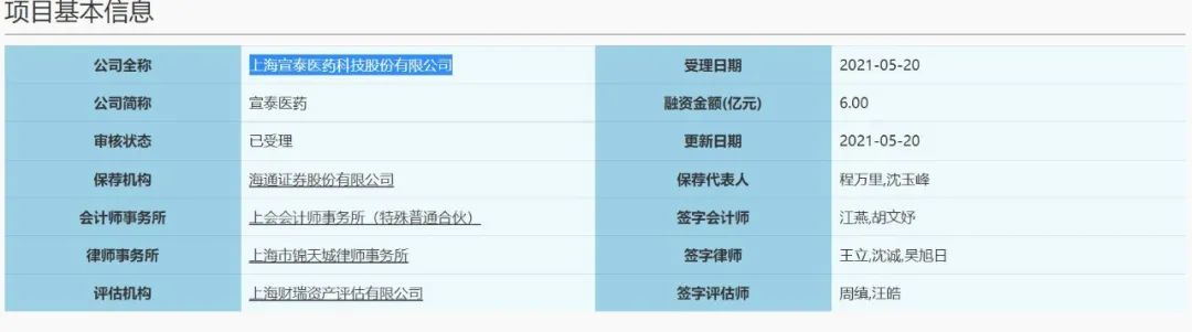 张通社获悉,5月20日,据上交所网站显示,上海宣泰医药科技股份有限公司(以下简称宣泰医药)的科创板上市申请已获受理,拟募集资金6亿元。