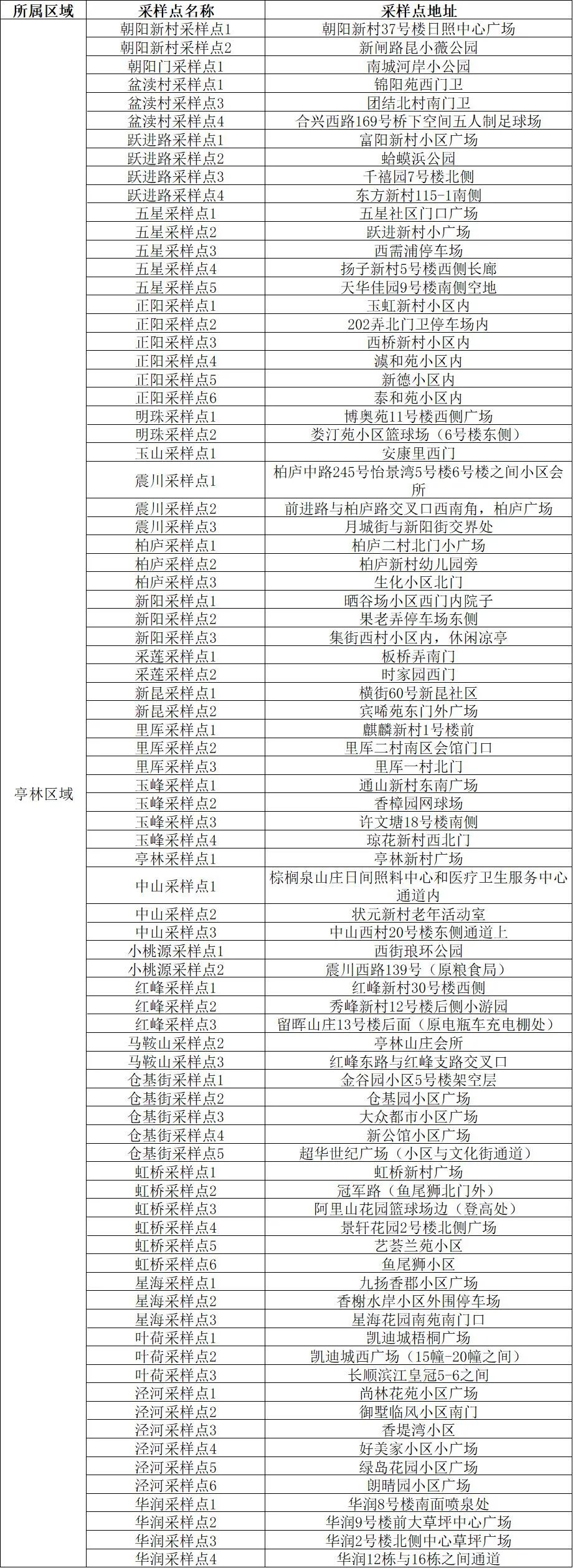 核酸检测采样点位明细