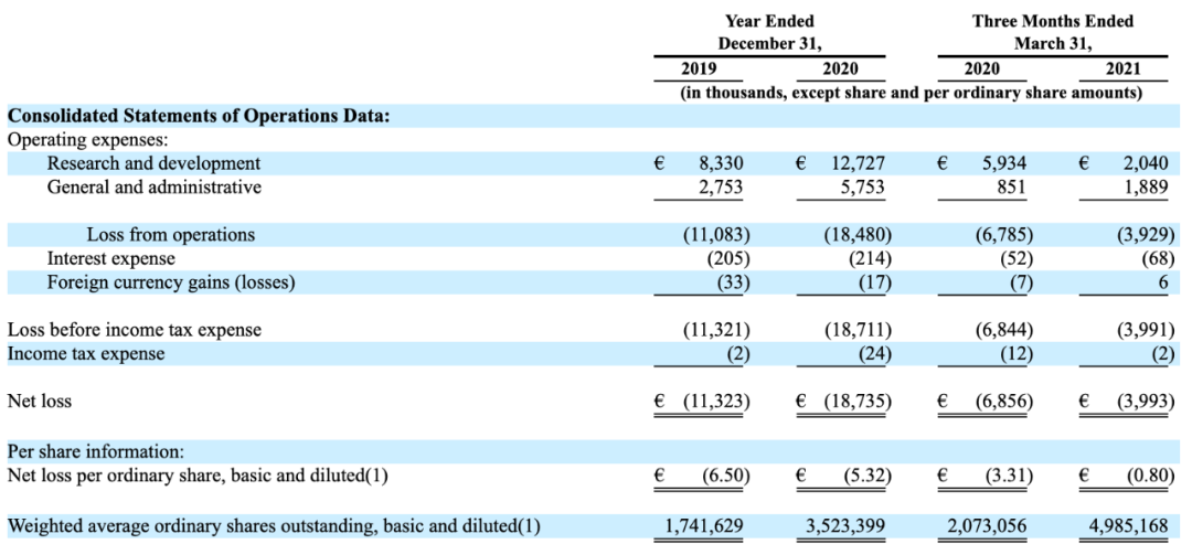 截止IPO前共融资约8580万欧元(约1亿美元),投资者包括Andera Partners, Bpifrance, Eurazeo Investment Manager (f/k/a Idinvest Partners), Kurma Partners, Perceptive Advisors, Pontifax, Sphera和Tekla Capital Management。