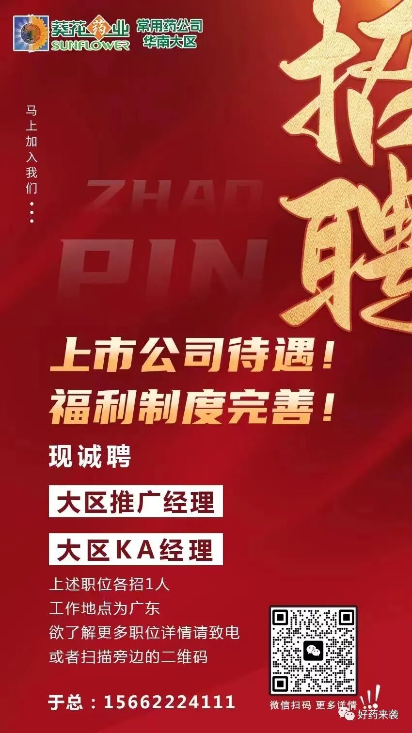 因公司快速发展需要,常用药公司华南大区诚聘大区推广经理与大区KA经理各1人。期待您的加盟!