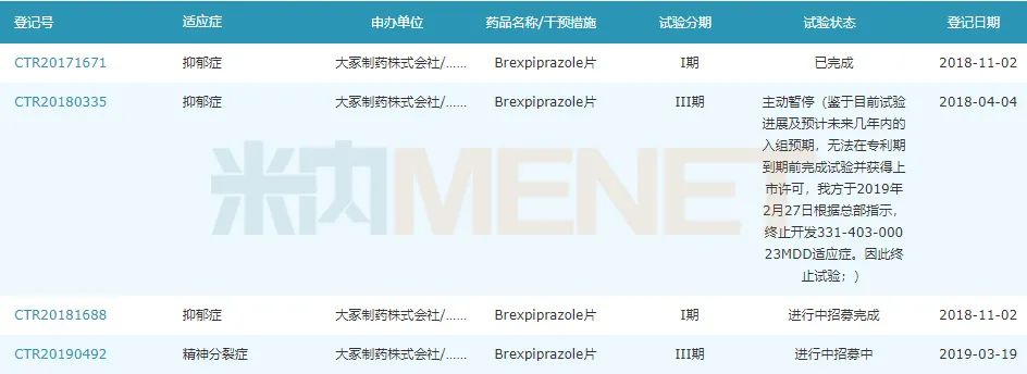图3:大冢制药的布瑞哌唑国内最新临床进展